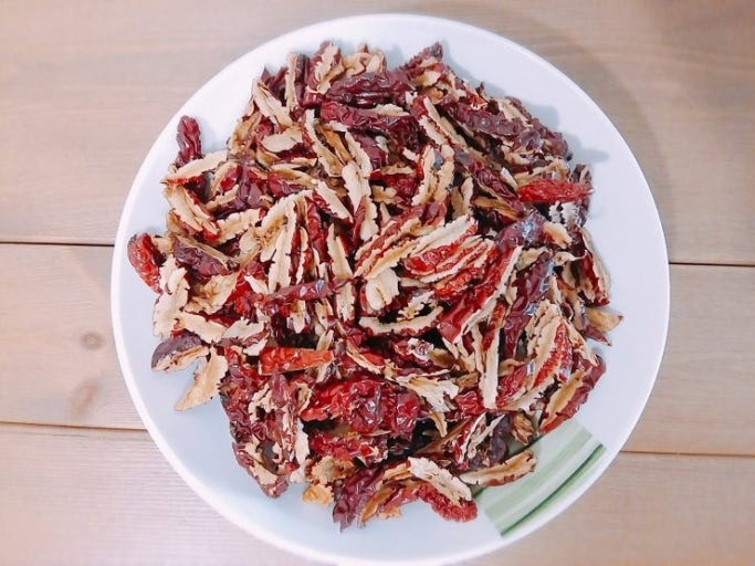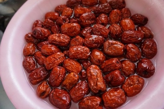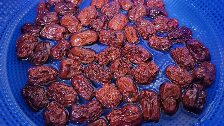 깨끗하게 손질된 대추와 껍질