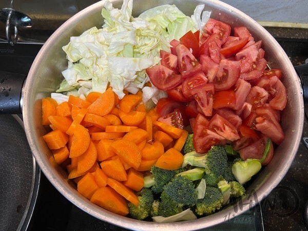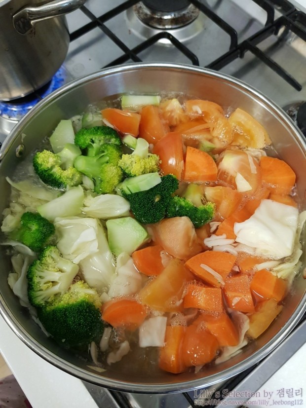 ▷ 삶은 채소와 채소 삶은물,