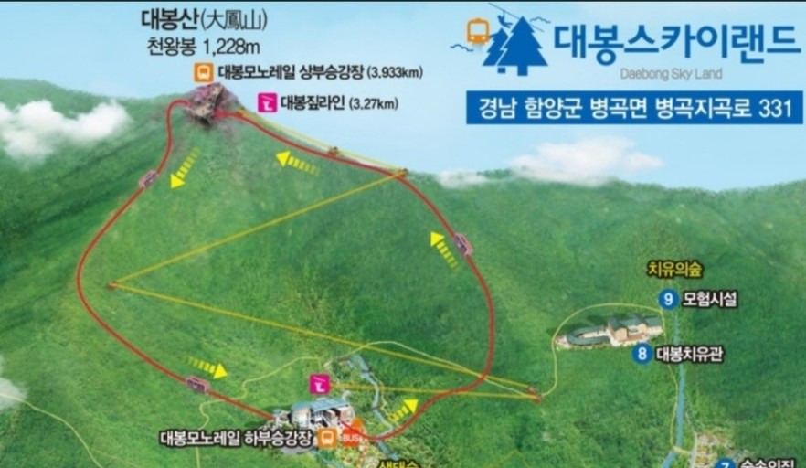 함양대봉산 大鳳山 ㅡ모노레일 여행ㅡ 함양 대봉산(1228m) 정상까지ㅡ 모노레일 타고 오른다ㅡ 경상남도 함양군 서하면과ㅡ 병곡면에 걸쳐