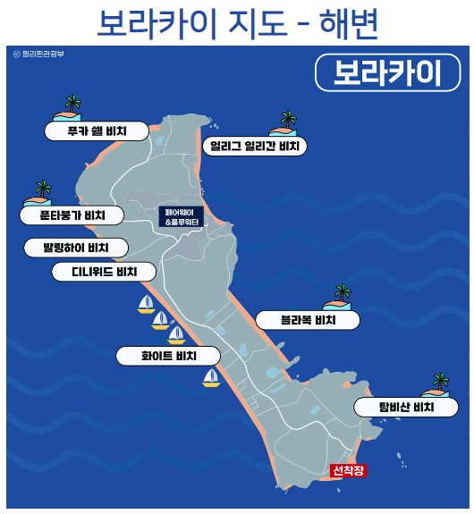 필리핀 보라카이 여행ㅡ 보라카이는 면적이 10㎢ 정도인 ㅡ 필리핀 중부의 서부 ㅡ작은 섬이지만 필리핀 주요 ㅡ 관광 명소 중 하나이다ㅡ