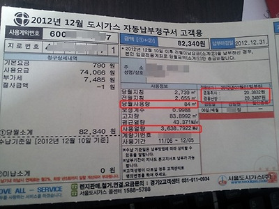것 같습니다. 2012년7월 이전의 사용부피에 단가를 곱하는 방법으로 어느정도 가스비를 쉽게 예측할 수