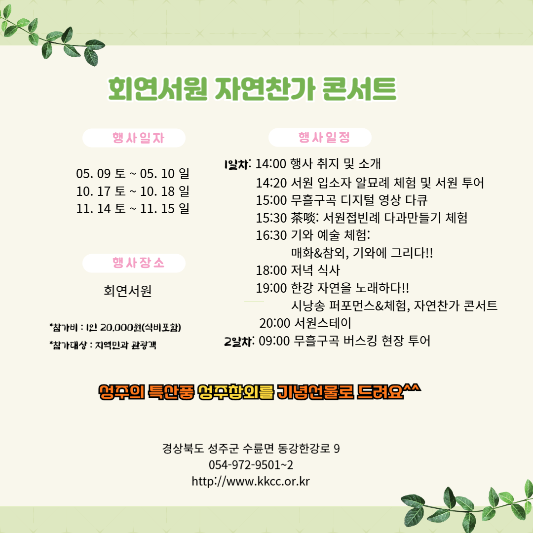 회연서원 자연찬가 콘서트 체험 작성자알라뷰|작성시간26.04.02|조회수0 목록 댓글 0 글자크기 작게가 글자크기 크게가 다음검색 현재 게시글 추가 기능 열기 북마크 공유하기 신고 센터로 신고 댓글 댓글 0 댓글쓰기 답글쓰기 댓글 리스트