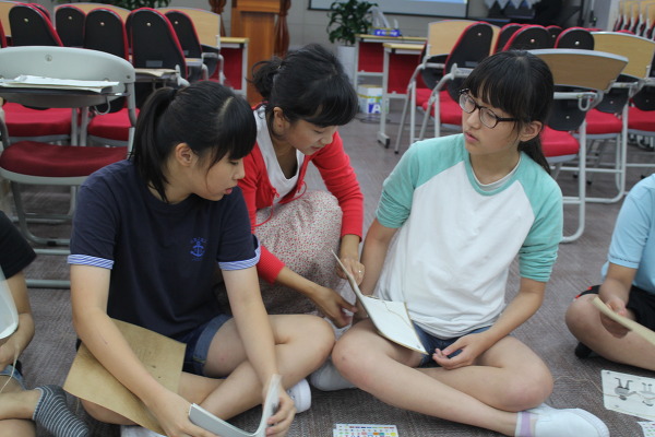 동그랗게 모여 우리 친구들 열심히 만들고 있습니다:-)