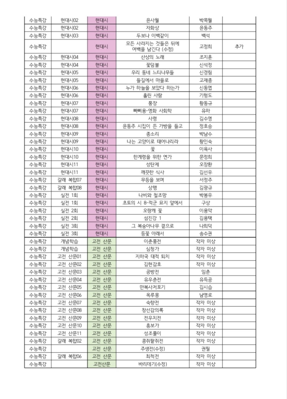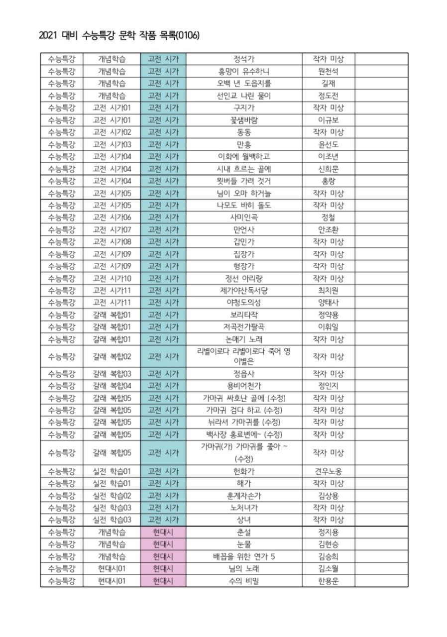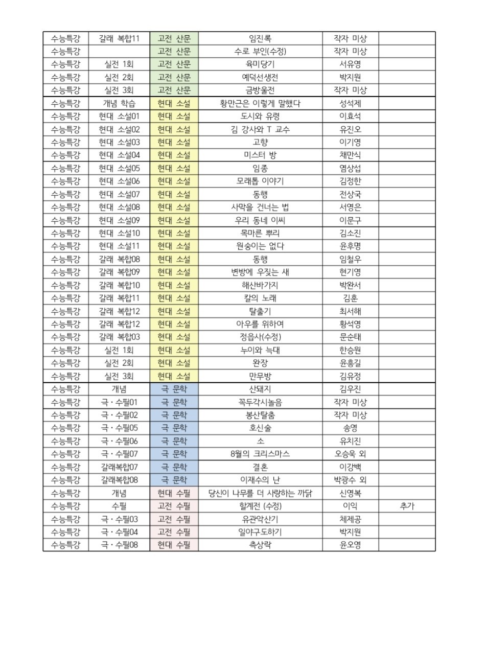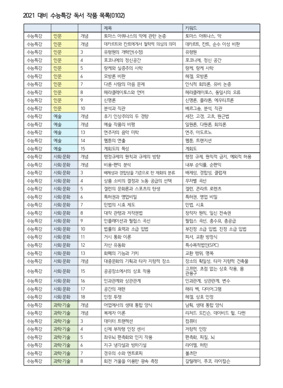2021학년도 수능 대비 EBS 수능 특강 수록 제재 목록 작성자푸른하늘|작성시간20.01.13|조회수942 목록 댓글 0 글자크기 작게가 글자크기 크게가 2021학년도 국어영역 수능특강 문학, 독서 목록.hwp 첨부파일첨부된 파일이 6개 있습니다. jpg 파일 d_e78Ud018svc2ah1ifutpv1n_f8o8bj.jpg 다운로드 jpg 파일 d_e78Ud018svcfsapzdtne7vh_f8o8bj.jpg 다운로드 jpg 파일 d_f78Ud018svc4llzhc89tfhv_f8o8bj.jpg 다운로드 jpg 파일 d_g78Ud018svc1njg5whdt4cj1_f8o8bj.jpg 다운로드 jpg 파일 d_i78Ud018svc1vxzfkq7kcoha_f8o8bj.jpg 다운로드 hwp 파일 2021학년도 국어영역 수능특강 문학, 독서 목록.hwp 다운로드 다음검색 현재 게시글 추가 기능 열기 북마크 공유하기 신고 센터로 신고 댓글 댓글 0 댓글쓰기 답글쓰기 댓글 리스트