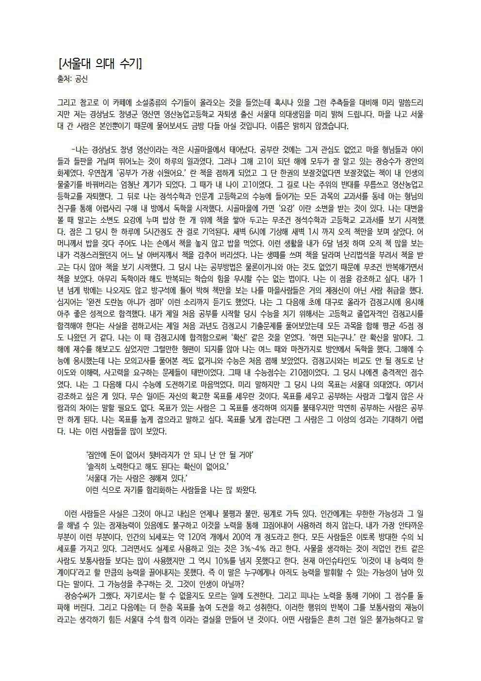 공부자극 서울대 의대 합격 수시 공신 퍼옴 작성자푸른하늘|작성시간18.01.08|조회수523 목록 댓글 0 글자크기 작게가 글자크기 크게가 다음검색 현재 게시글 추가 기능 열기 북마크 공유하기 신고 센터로 신고 댓글 댓글 0 댓글쓰기 답글쓰기 댓글 리스트