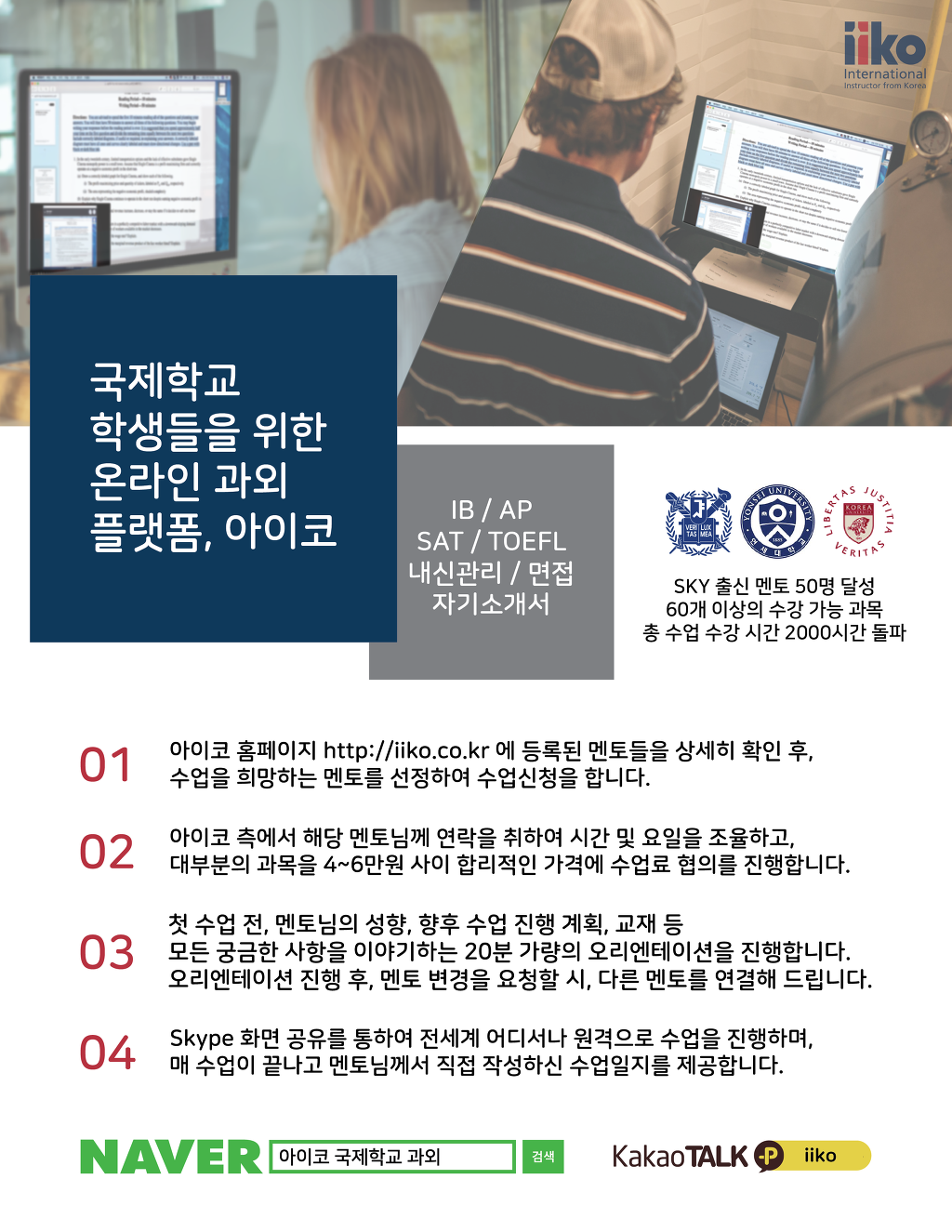 국제학교 학생들을 위한 온라인 과외 플랫폼 아이코입니다.