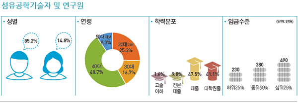 섬유시장에서는 최근 탄소섬유, 아웃도어용 기능성 섬유, 섬유강화플라스틱(FRP, Fiber Reinforced Plastic) 등 산업용 섬유와 패션섬유로 나아가고 있으며, IT 산업과의 융복합을 통해 새로운 섬유개발이 요구되고 있어 이 분야에 대한 전문가의 수요가 증가하고 있다.