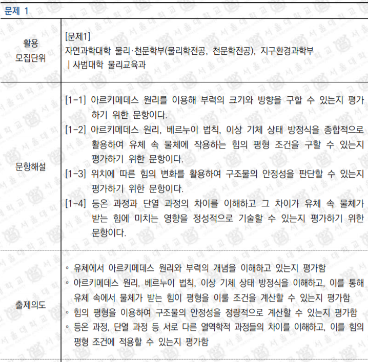 2020 서울대 일반전형 물/화/생/지 면접 및 구술고사