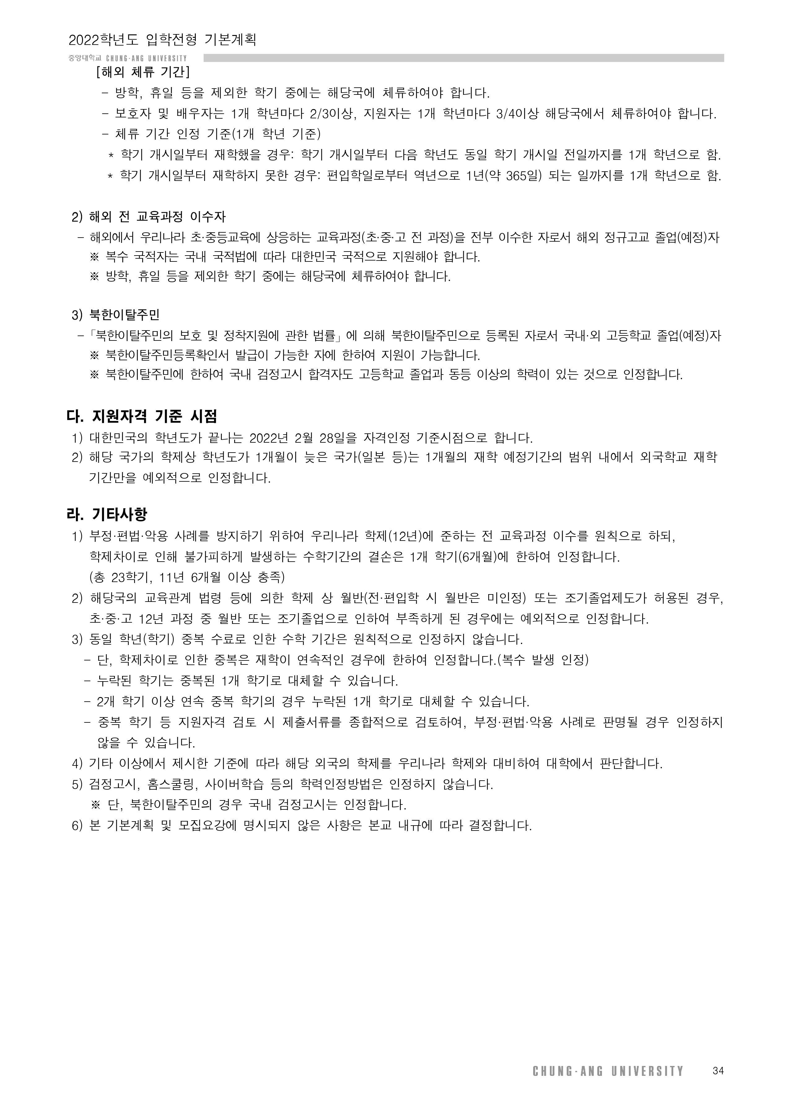 2022학년도 중앙대 재외국민과 외국인 특별전형 시행계획안 작성자푸른하늘|작성시간20.10.29|조회수486 목록 댓글 0 글자크기 작게가 글자크기 크게가 2022학년도+중앙대학교+입학전형+기본계획(20200428)_배포용.hwp976.98KB2022학년도 중앙대학교 입학전형 기본계획(20200428)_배포용.hwp305.00KB 첨부파일첨부된 파일이 5개 있습니다. jpg 파일 0034.jpg 다운로드 jpg 파일 0033.jpg 다운로드 jpg 파일 0032.jpg 다운로드 hwp 파일 2022학년도 중앙대학교 입학전형 기본계획(20200428)_배포용.hwp 다운로드 pdf 파일 2022학년도+중앙대학교+입학전형+기본계획(20200428)_배포용.hwp.pdf 다운로드 다음검색 현재 게시글 추가 기능 열기 북마크 공유하기 신고 센터로 신고 댓글 댓글 0 댓글쓰기 답글쓰기 댓글 리스트