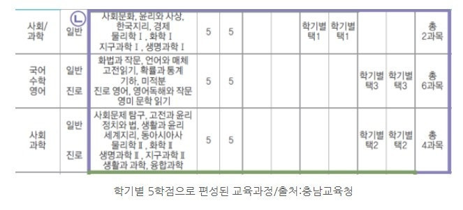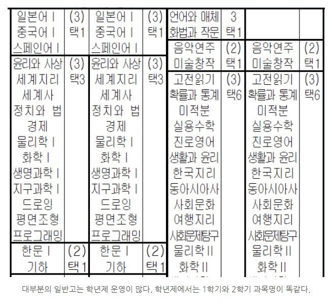 이렇게 학기제로 교과를 선택할 수 있게 운영하면 한 학기에 배우는 과목수는 줄어들지만, 1년동안 배우는 과목수는 오히려 늘어나는 효과가 있습니다.