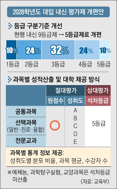 그런데 이게 무시 못할 것이 상대평가 5등급이 표기된다는 말이에요. 고교 학점제 하에서는 표준편차 빼놓고 원점수 평균점수 성취도와 성취도별 분포비율, 수강자 수가 모두 표기됩니다. 표준편차가 빠져있는데 이건 뭐 구하면 됩니다. 하지만 그러려면 모든 재학생의 점수가 있어야 하므로 대학에선 구하기 어렵겠죠.
