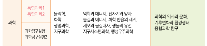 ○보통교과(일반고·특목고)와 전문교과(특성화)로 나뉘고, 보통교과는 다시 공통 과목과 선택 과목으로 나뉩니다. 공통과목은 1학년 때 이수하게 되는데, 공통국어1·2, 공통수학1·2, 공통영어1·2, 한국사1·2, 통합사회1·2, 통합과학1·2, 과학탐구실험1·2 로 구성되어 있습니다. 공통과목이라 모두가 같이 수강하게 됩니다. 대학의 교양과목 개념이라고 봐야겠죠.