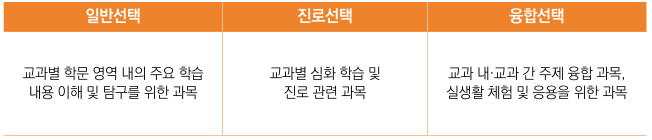 공통과목은 1학년 때 과목선택없이 모두 공통으로 다 함께 배워야 하는 과목들입니다. 그리고 일반선택은 공통과목 중에서 더 심화된 과목들이라고 보시면 되고, 2학년때부터 배우게 됩니다.