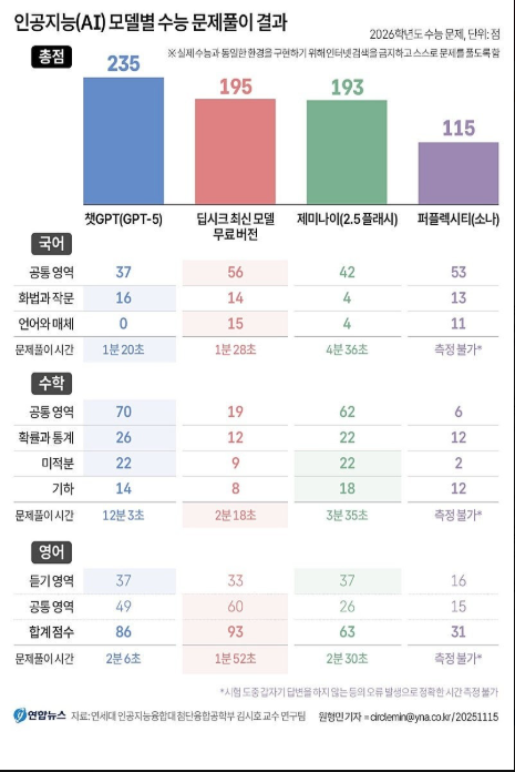 2026수능 인공지능 모델별 수능문제풀이 결과 작성자푸른하늘|작성시간25.12.16|조회수6 목록 댓글 0 글자크기 작게가 글자크기 크게가 다음검색 현재 게시글 추가 기능 열기 북마크 공유하기 신고 센터로 신고 댓글 댓글 0 댓글쓰기 답글쓰기 댓글 리스트