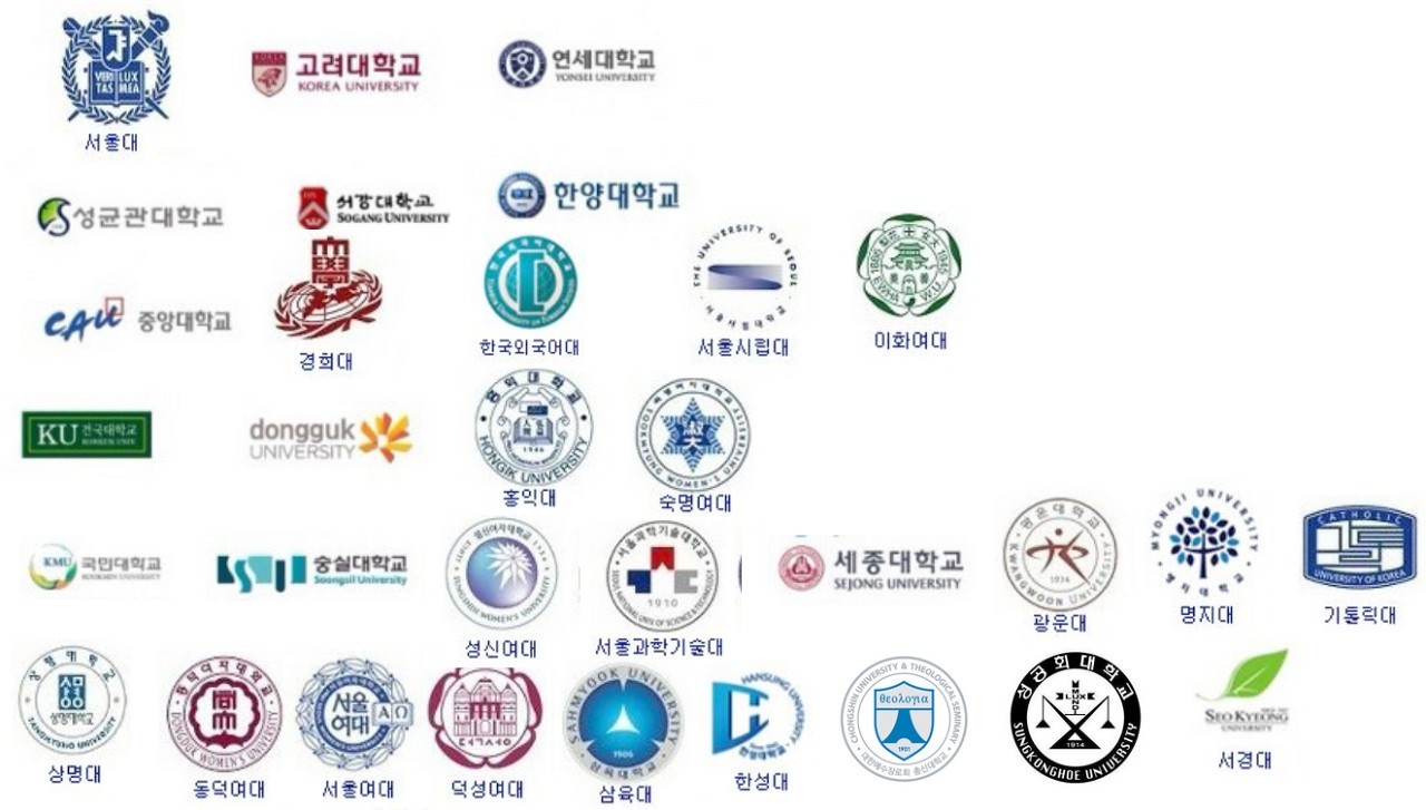 SKY 다음으로는 성균관대, 서강대, 한양대(서성한), 중앙대, 경희대,한국외국어대, 서울 시립대(중경외시)라고 합니다. 이화여대는 중경외시 라인과 비슷하거나 조금 높은 정도입니다. 다음은 건국대, 동국대, 홍익대, 숙명여대까지입니다. 이들 대학은 상위권 15개 주요 대학으로 분류됩니다.