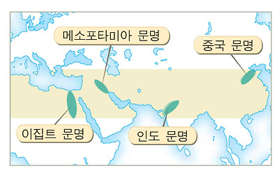 세계 4대 문명을 나타낸 지도 입니다