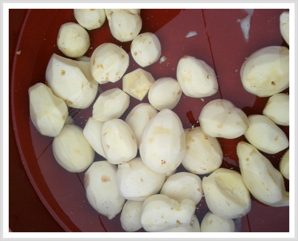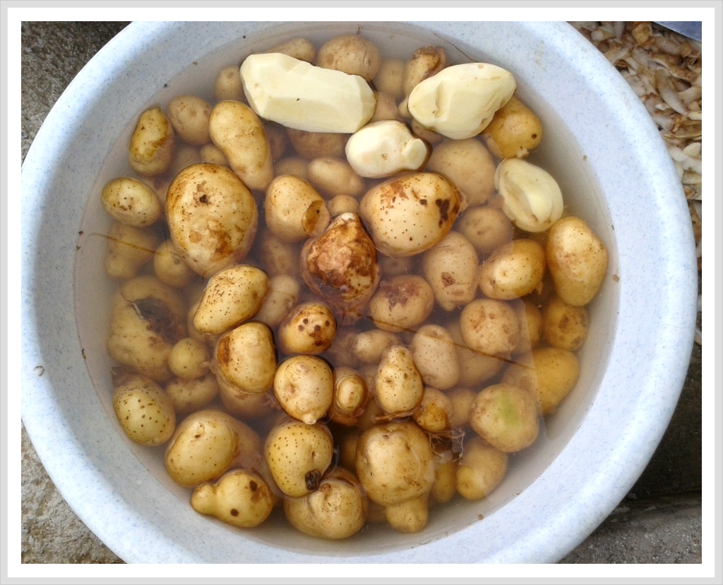 (감자 껍질을 제거하고 감자가루를 만들면 깨끗하고 손도 덜간다. )