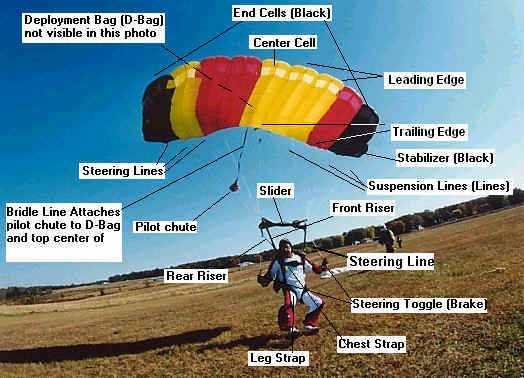 왼쪽으로 선회를 할 경우에는 왼쪽의 토글을 당깁니다. 토글에 부착된 콘트롤 라인은 낙하산의 왼쪽 후방을 아래쪽으로 끌어내리고 낙하산은 좌측이 올라가며, 우측은 잡아당겨져 얇아지는 구조입니다.