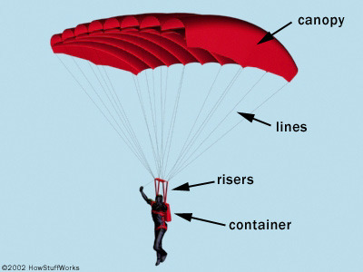 또한 사용되는 낙하산도 가능한 한 공중에 오래 머무를 수 있어야 하고, 정확한 낙하를 할 수 있도록 조종성이 높은 것이 요구됩니다. 이러한 요구를 모두 만족시킬 수 있는 낙하산형은 스퀘어 형입니다.