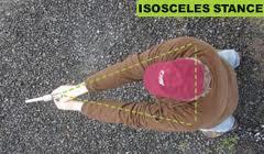 왼발과 왼쪽어깨를 앞으로 하고 오른쪽 어깨와 발을 뒤로 한다음