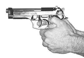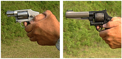 그리고 아래 두 사진이 대표적인 리볼버 그립인데, 왼쪽 사진처럼 자동권총을 파지 했다가는