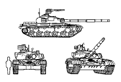 냉전시대, 소련군에만 약 3,600여대가 배치되고 국외로는 일체 수출 및 공여되지 않은 전차로 획기적인 신기술을 적용해 개발된 전차입니다.처음에는 이 전차도 115mm D-68 활강포를 장비했으나, A형부터는 125mm 활강포를 도입하고 주포발사 대전차 미사일인 9M112를 발사할 수 있게 되었습니다.