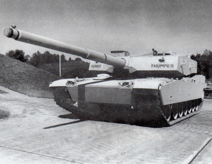 하지만 이후 기존의 M1 전차의 포탑은 140mm 활강포의 반동을 효과적으로 제어하는 것이 어렵다는 실험결과가 나옴에 따라 (이전에 설명한 Leopard 2 전차 140mm 활강포 장착형에서도 동일한 문제가 발생), 대형화된 신형 포탑을 적용한 M1 "Thumper"가 등장하게 됩니다.