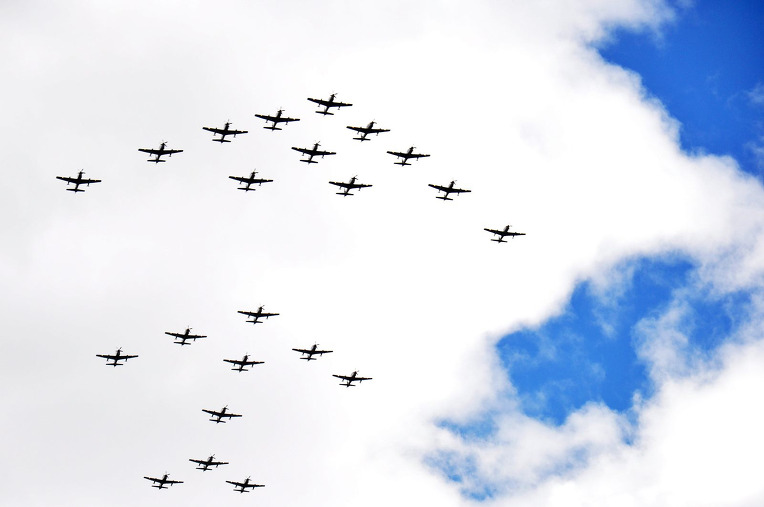 7월 20일 콜롬비아의 수도 보고타에서 거행된 스페인으로부터 독립 200주년 기념 군퍼레이드에서 콜롬비아공군 Boeing 707-300 급유기와 Kfir 전투기가 위용을 과시하며 Fly by를 실시중입니다.