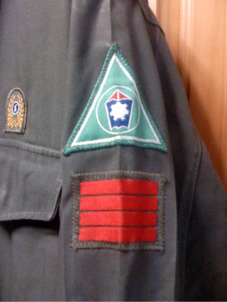 부대마크도 어떤 부대인지 잘,,다만 왼쪽에 보이는 예비군 개구리마크를 뜯어내자,
