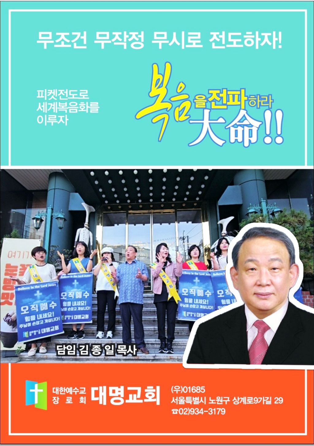 1993년 겨자씨교회를 개척하고, 마포구 도화1동 시절에는 가든호텔 쪽에서 현수막을 걸고 거리찬양을 하며 청소년들을 중심으로 전도하던 시절이었다.