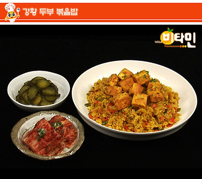 <위대한 밥상 레시피> 1. 첫번째 밥상 강황/울금 라면 인스턴트 음식, 라면을 먹더라도 조금 더 건강을 생각해서 먹자!! - 라면 스프 반, 강황/울금가루 반을 넣고 라면을 끓인다. - 기호에 맞게 버섯, 대파, 고추 등 채소를 넣고 살짝 끓이다가 마지막에 달걀 팍~~ ㅋㅋ - 라면의 면발이 샛노란색으로 물들면서 느끼함은 사라지고 국물은 개운하면서 깔끔하다. 맛있는 노란 색으로 한 번 반하고, 개운한 국물 맛에 또 한 번 반하는 영양을 높인 강황/울금 라면~~~ 이제 부터는 인스턴트에도 영양을 뿌려 먹자구요!!! ^^* 2. 두번째 밥상 강황/울금 두부볶음밥 밋밋한 볶음밥은 가라~~ 황금 빛의 유혹에 빠져들다!! - 두부는 깍뚝썰기로 먹기 좋게 적당한 크기로 썰어, 고추, 전분, 강황/울금가루를 묻혀 기름에 구워낸다. - 기호에 맞게 피망, 양파, 당근 등 채소를 볶다가 강황/울금가루를 넣고 밥을 섞어 볶는다. - 마지막으로 두부를 넣고 섞어 살짝 볶으면 완성!! 강황/울금 요리를 할 때는 콩기름, 옥수수기름, 포도씨기름, 버터 등 향이 순한 기름으로 한다.(올리브유는 별루..) 3. 세번째 밥상 강황/울금 닭가슴살 철판볶음 매콤한 맛과 환상의 짝궁, 강황/울금 - 닭가슴살, 감자, 당근, 양배추, 깻잎, 대파, 채소 손질한다. - 간장, 고추가루, 강황/울금가루를 넣어 양념장을 만들어 섞고 철판에서 볶는다. - 기호에 맞게 떡, 고구마 등을 추가로 넣어 먹어도 맛있다. 울금은 매콤한 맛과도 잘 어울려 영양분 흡수가 잘 된다고 하니, 고추가루가 들어간 매콤한 음식에 넣어보세요^^* 삼결살 등의 육류 요리에 울금가루를 뿌리면 지방 흡수를 낮춰준다고 한다. <자료 출처 : KBS 비타민>