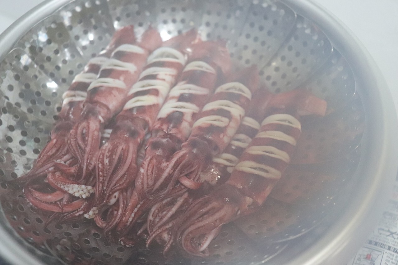 꼬소하고 쫄깃한 통찜오징어의 맛.