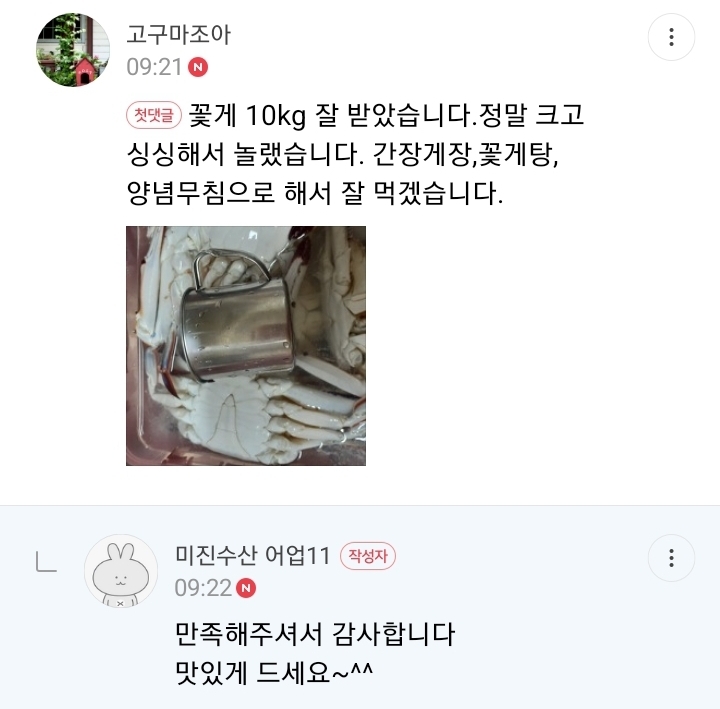 🚫 급냉꽃게 1킬로당 ↔️1만5천원(3키로이상)