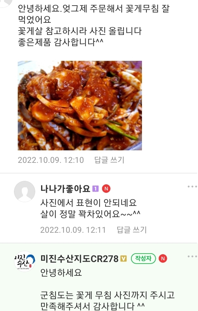 저희 꽃게는 다른지역보다 빠르게 끝나요~