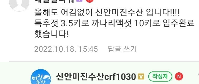 작성자미진수산 어업11작성시간22.11.02조회수17 목록 댓글 2신안 지도 미진수산입니다