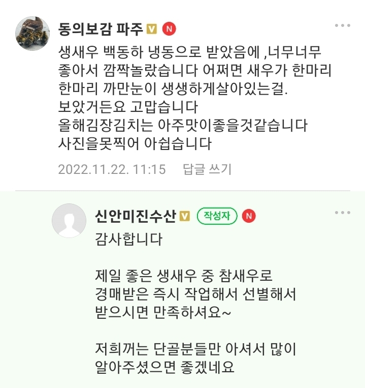 🚫생새우 1킬로당 ↔️ 1만원(2킬로이상)