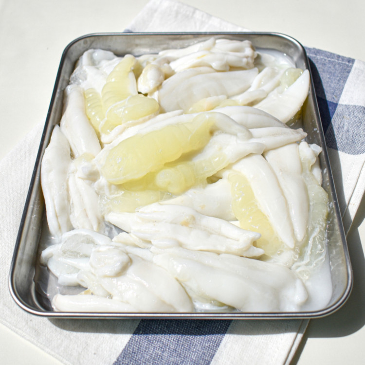 1.오징어 알을 해동 후 흐르는 물에 세척해주세요!