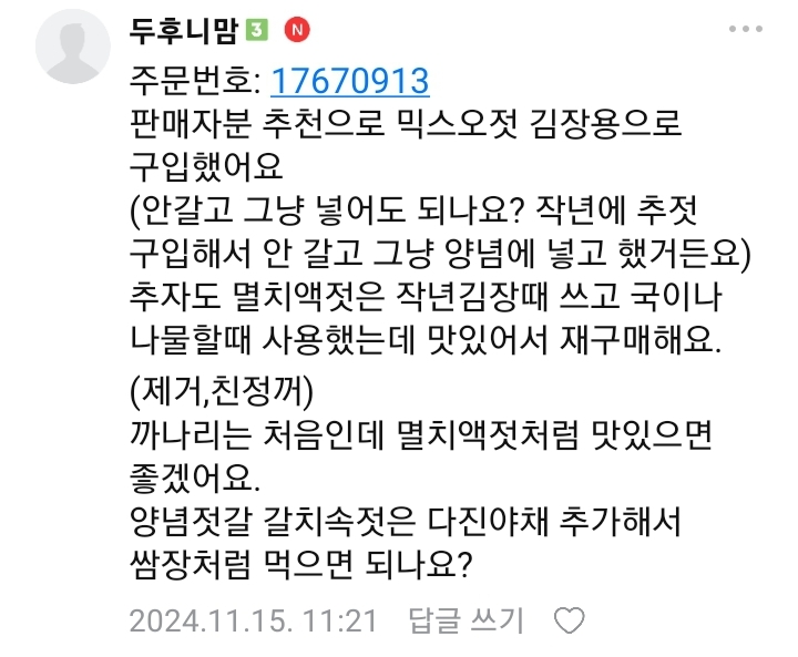 🚫 서해안 갈치액젓4.3킬로 ↔️ 3만원