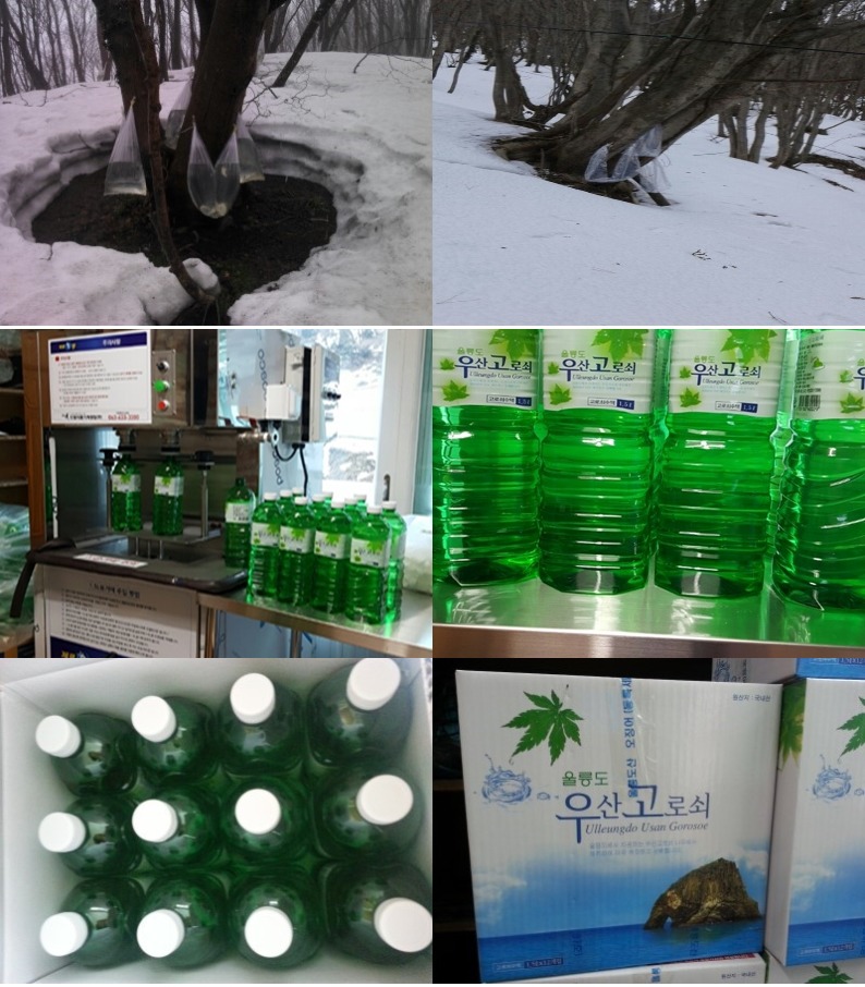 울릉도 고로쇠물은 전국 고로쇠 나무 중 유일하게 순수 국산유전자를 지닌 고로쇠나무에서채취.