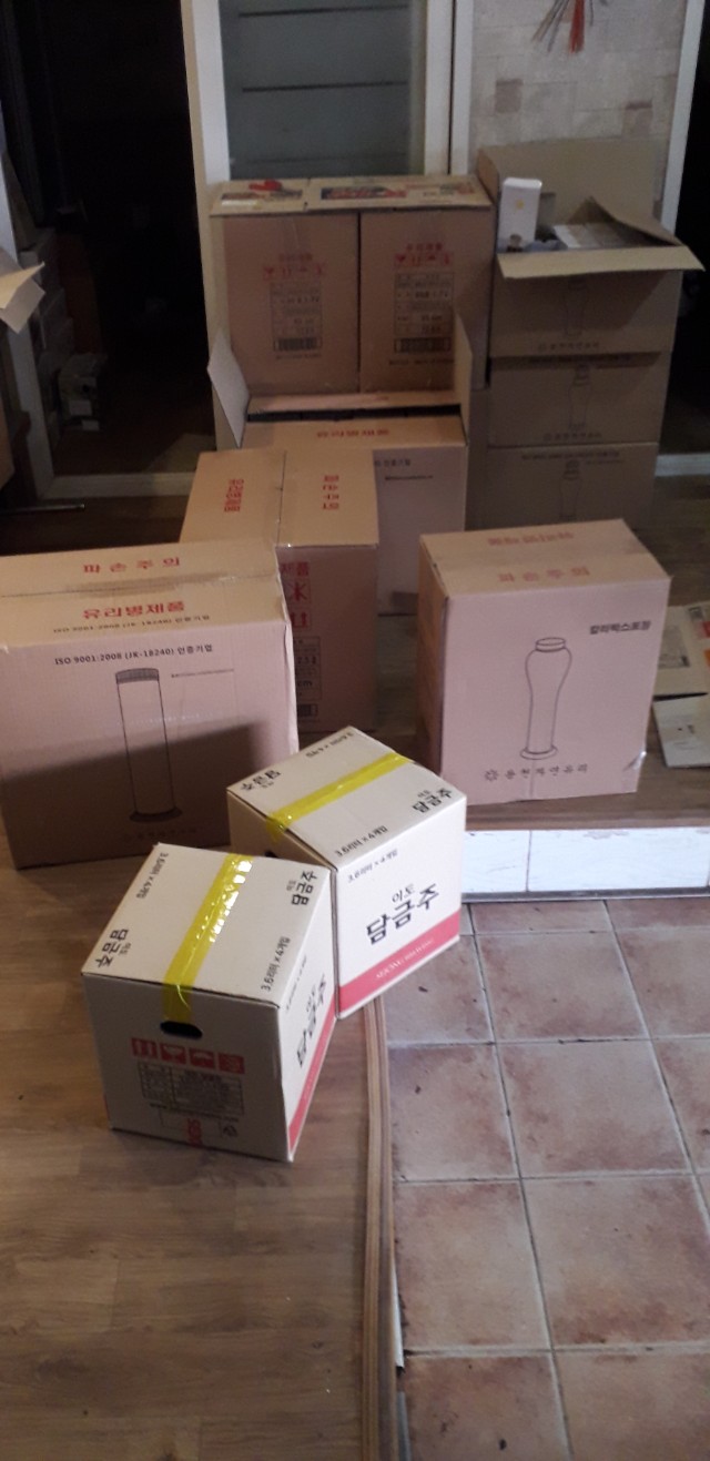 겨우살이 작업 마치고 바로 청주로 출발하여 약초 담그는데 필요한 유리병을 잔뜩 사왔어요~