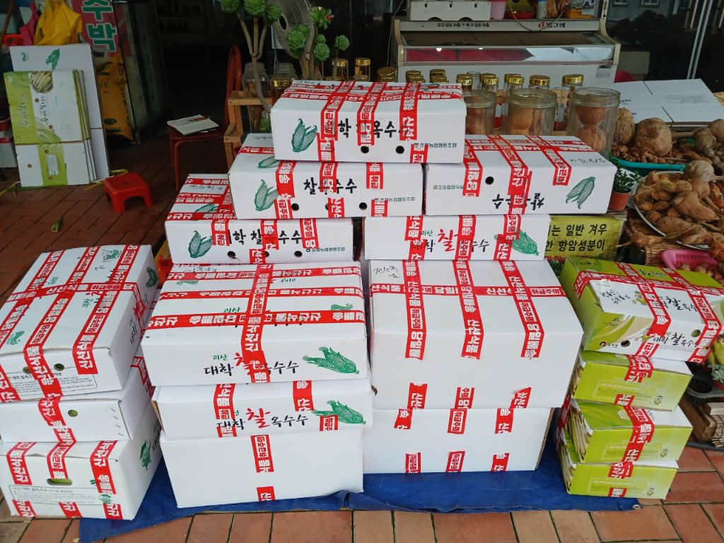 기똥차게 맛있는 싱싱한 괴산대학찰옥수수 오늘도 열심히 작업합니다.
