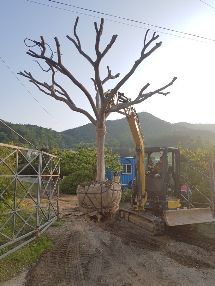 전원주택이나 공장이나 텃밭에 포인트목으로 심으시고 싶다는 분들이 계셔서 포크레인으로 들어야 하는 큰 나무 작업했습니다. 정말 잎이 있든 없든 정말 예쁜 나무라고 생각이 드네요
