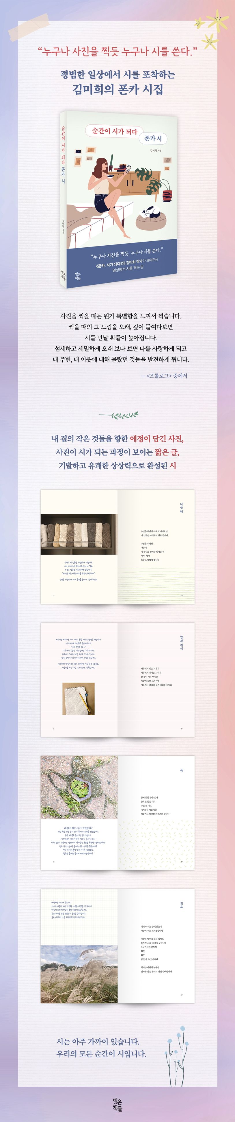 많은 이에게 ‘폰카 시 쓰는 법’을 알려온 저자는 《순간이 시가 되다 폰카 시》로 대답을 대신합니다.