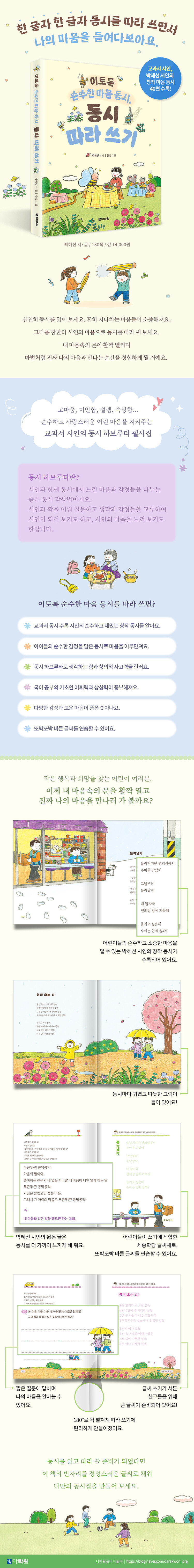 박혜선 시, 글 『이토록 순수한 마음 동시, 동시 따라 쓰기』 다락원 (2024.4)