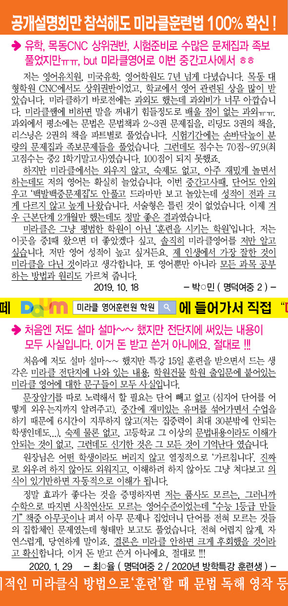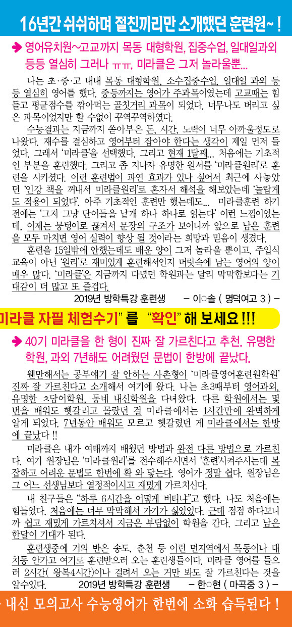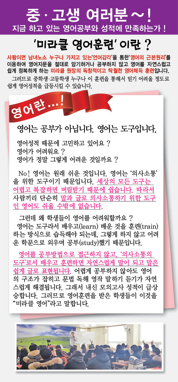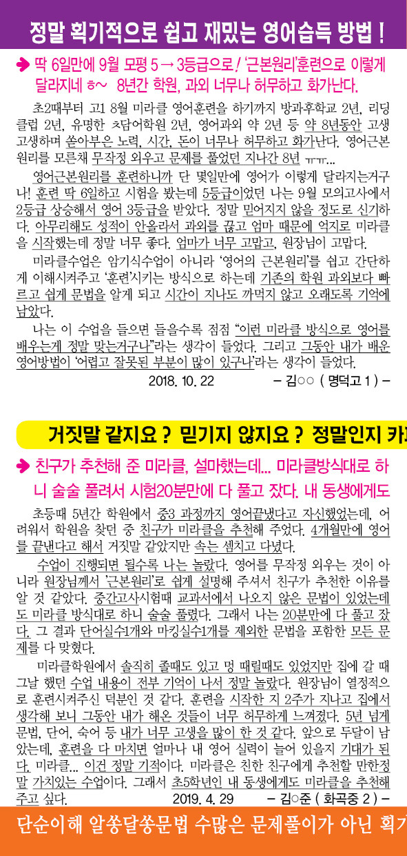 을 받은 학생들이 이것을 "미라클 영어"라고 말합니다.