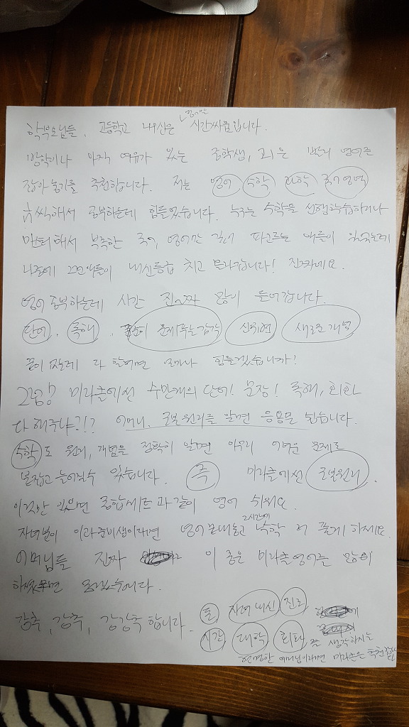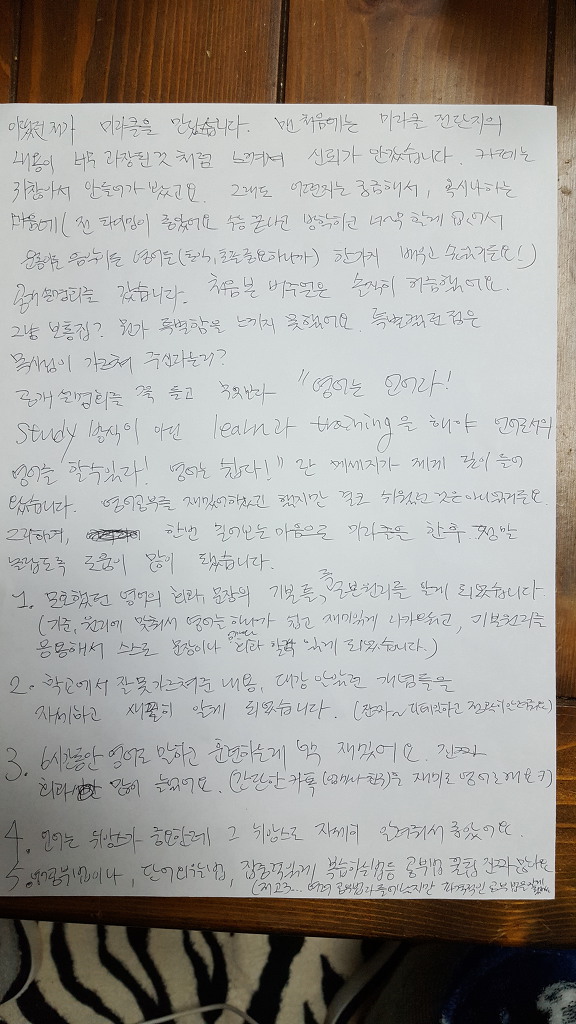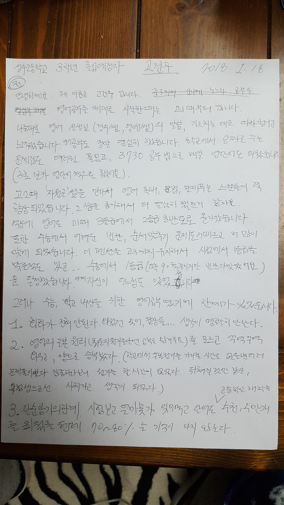 나름대로 영어선생님(경수쌤, 영맨쌤)의 말씀, 가르치는 대로 따라갈려고 노력했습니다. 영어 공부도 정말 열심히 했습니다.