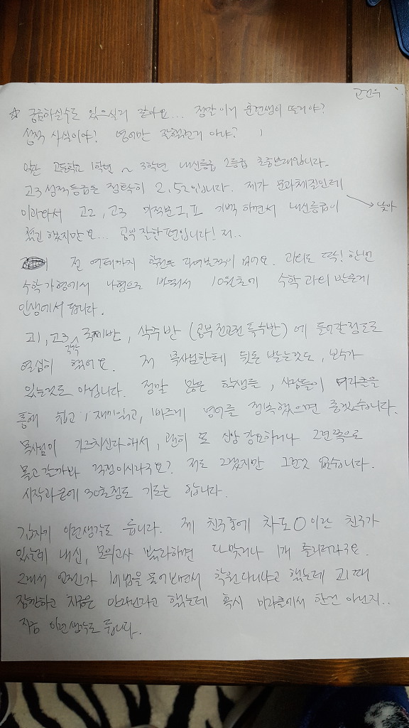 전 여태까지 학원은 다녀본 적이 없어요. 과외도 딱! 한번 수학 가형에서 나형으로 바꿔서 10월 초에 수학과외 받은 게 인생에서 답니다.