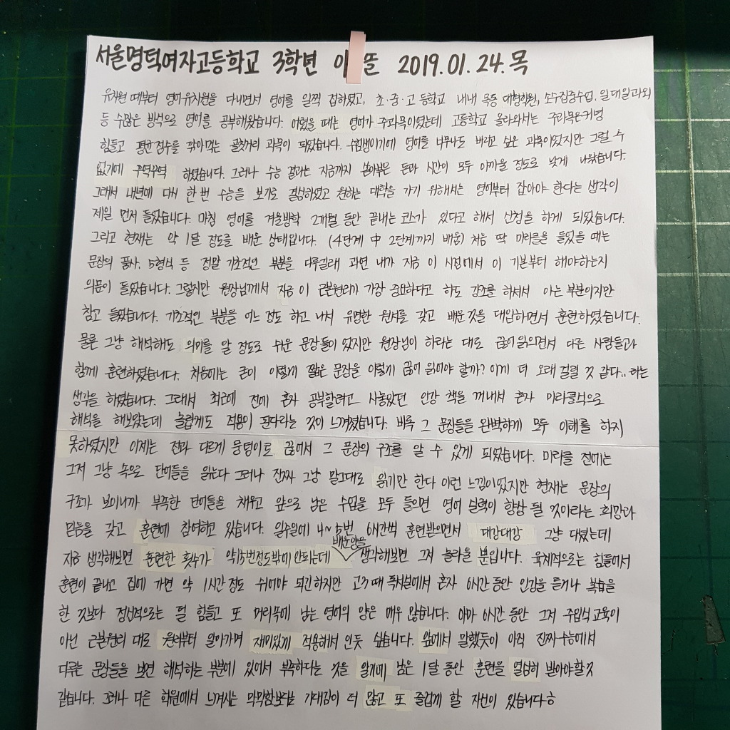 41기 이○솔(명덕여고3) 영어유치원~고교까지 목동 대형학원,집중수업,일대일과외 등 수많은 방식으로 영어를... 그러나 ㅠㅠ, 미라클은 그저 놀라울뿐...