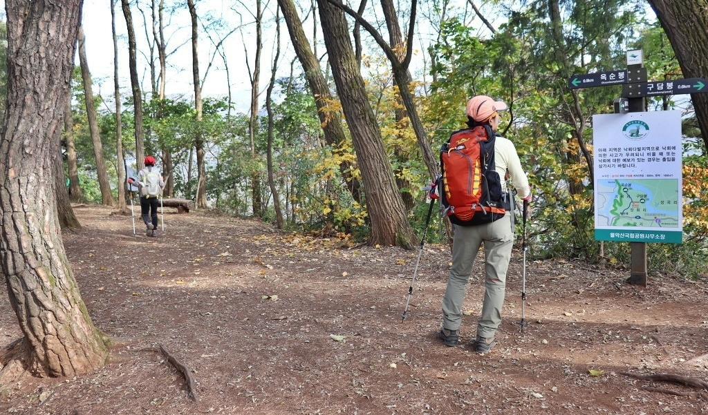 계란재를 들머리로 오르다 만난 삼거리,, 왼쪽은 옥순봉,, 우측은 "구담봉" 방향 ~