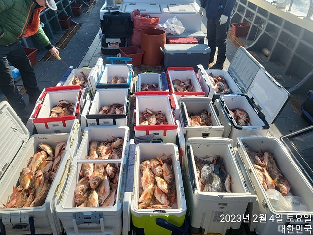 23.02.04 오늘도 험한 기상에 씨알 좋은 열기 잡고 왔습니다. 거친 바다에 열심히 해주시고 찾아주셔서 감사합니다.